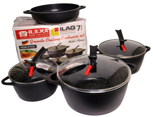 سرویس چدن 7 پارچه جدید R.S.KA🇩🇪 کیفیت بسیار عالی مدل آلمانی🇩🇪 سایز قابلمه ها : 30,26,22 سایز تابه : 26